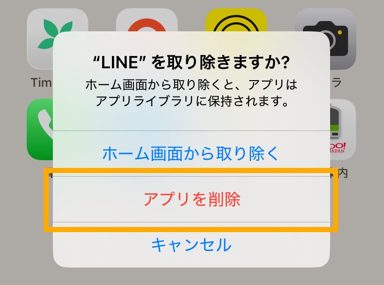 - 4「LINEを削除しますか?」という確認が表示されたら「削除」をタップする