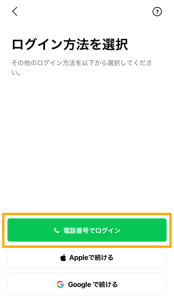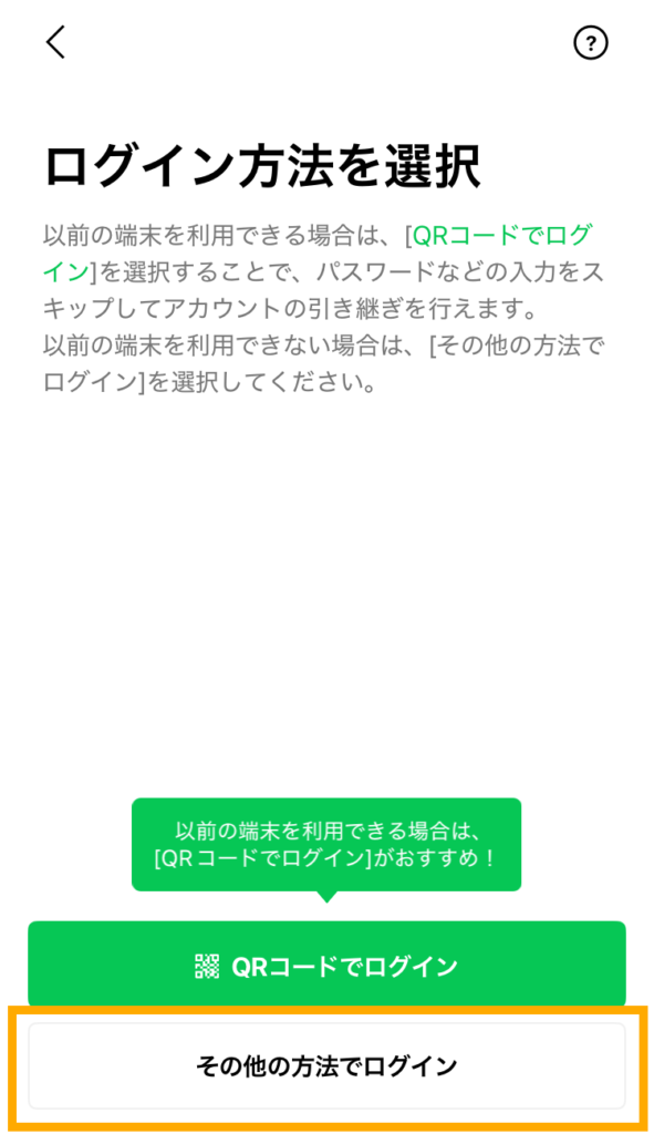 - 3ログイン方法の選択画面になったら「その他の方法でログイン」をタップ
