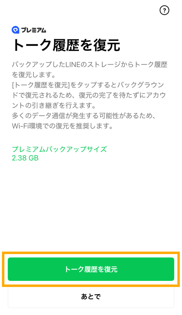 機種変更ではなく、同じiPhoneでの「再インストール」で、トークの復元には「プレミアムバックアップ」を利用する方法です。
