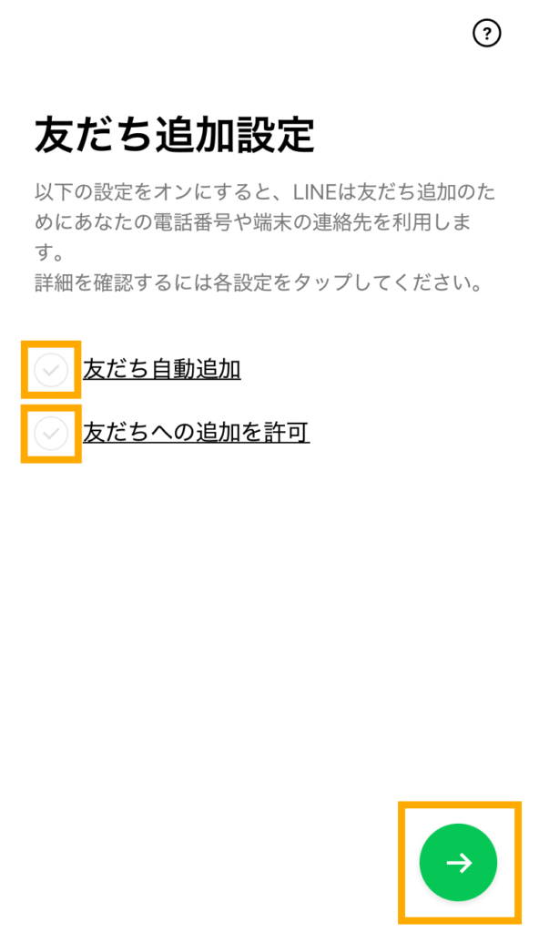 自分の電話番号を知っているだけの人にLINEアカウントを知られたくない場合はチェックを外して右下の矢印をタップ
