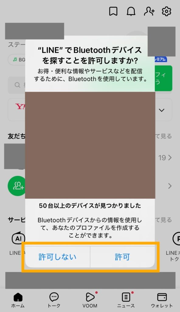 - 14「LINEでBluetoothデバイスを探すことを許可しますか?」という意思確認画面が表示される