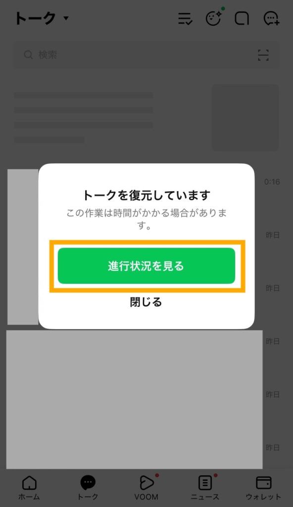 - 15「トーク」をタップすると「トークを復元しています」の表示が出る