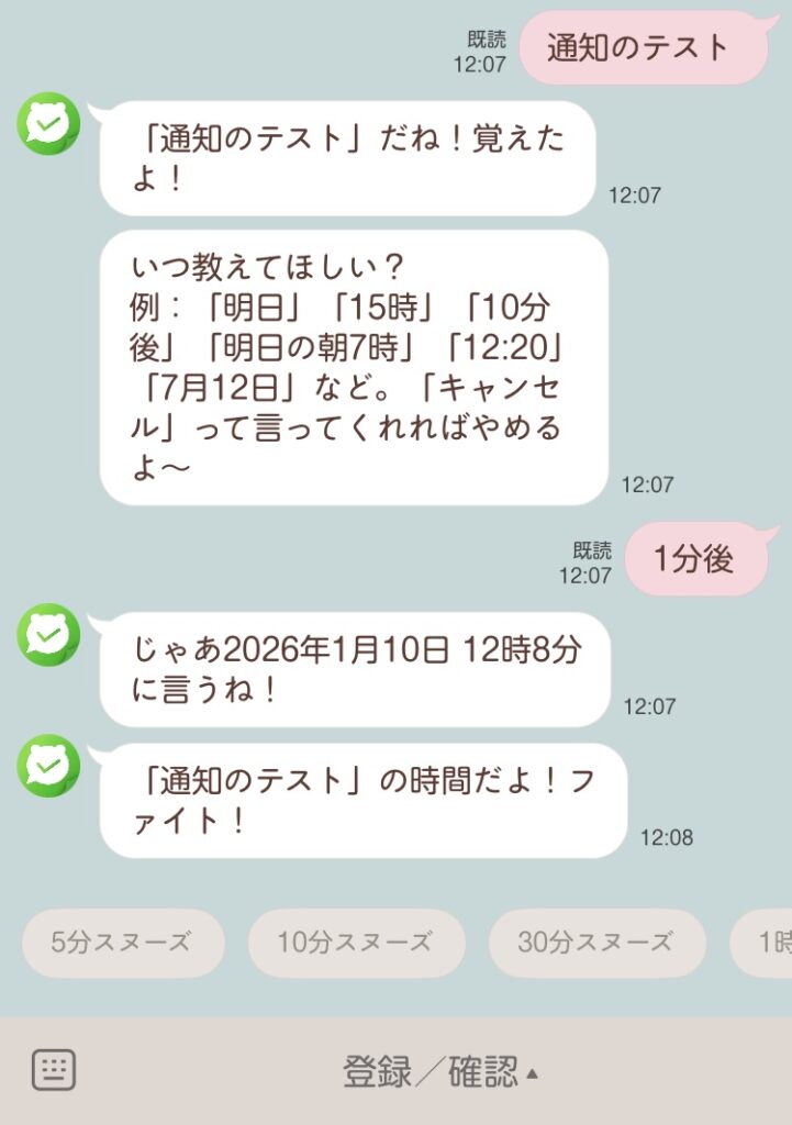 1分で結果が出るLINEの通知テスト(リマインくん)